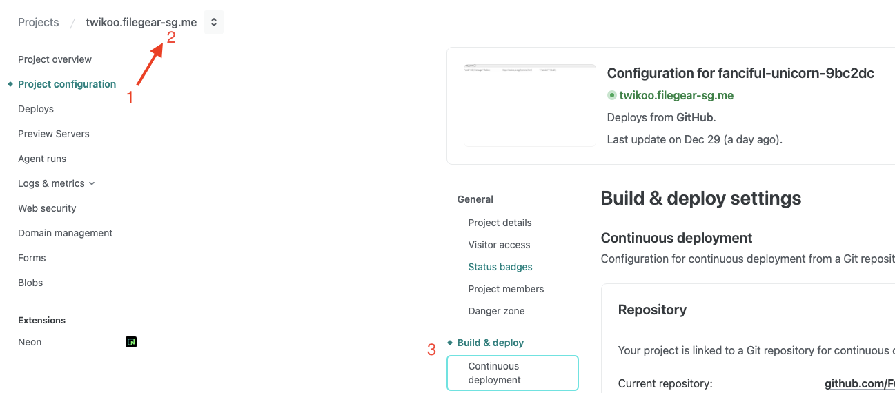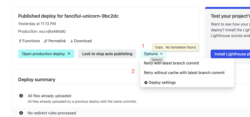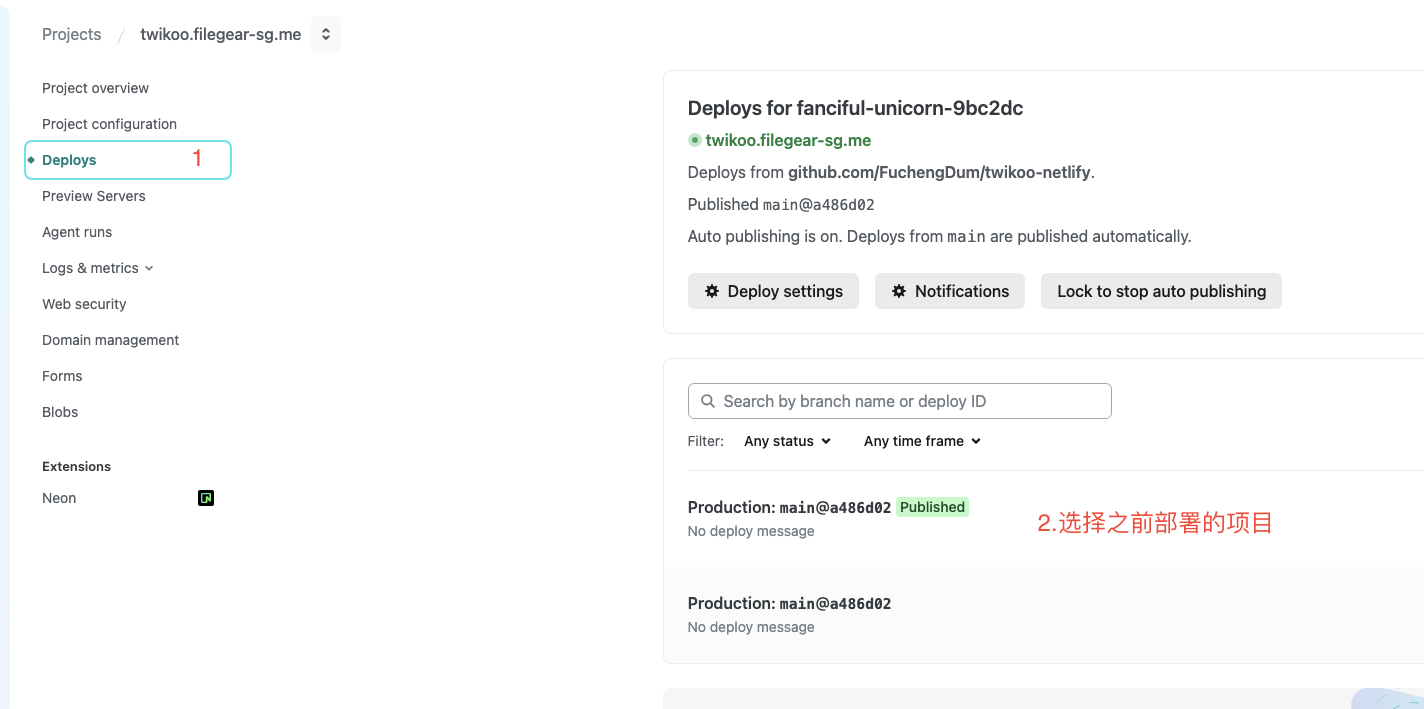 5.点击 Deploy twikoo-netlify,部署完成后,此时会提示缺少MONGODB_URI环境变量。
