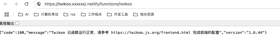 上图中的地址即为云函数地址(包含 https:// 前缀和 /.netlify/functions/twikoo 后缀,例如 https://xxx.netlify.app/.netlify/functions/twikoo),将其配置在博客主题的config文件