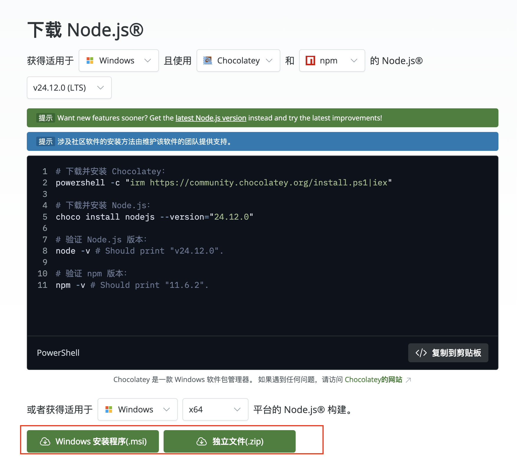 下载Node.js ,Node.js为大多数平台提供了官方的安装程序。
