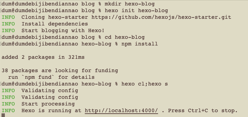 - 创建一个文件夹hexo-blog,执行以下命令,Hexo将会在该文件夹下初始化相关文件