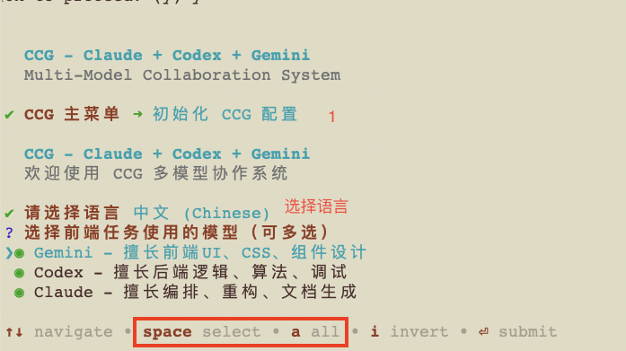 只选择一个的时候可以正常协作调用;前端请选择Gemini,后端选codex,