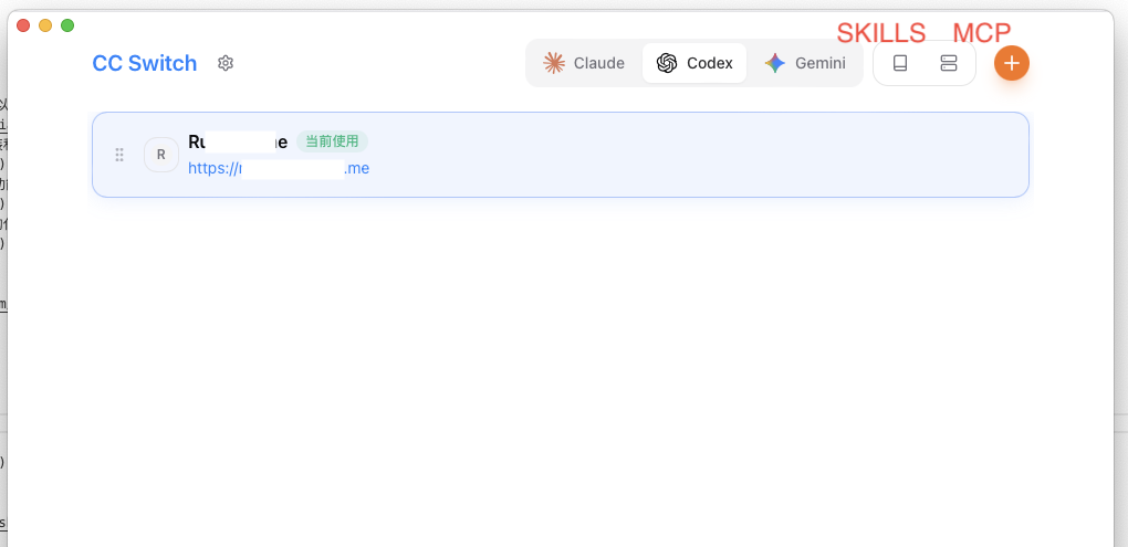 搜索cc-switch,打开应用,进行Codex,Claude,Gemini的配置;包括MCP,SKILLS的配置